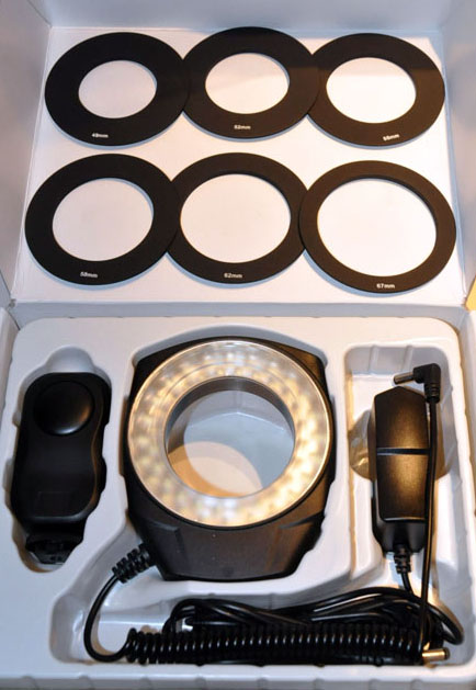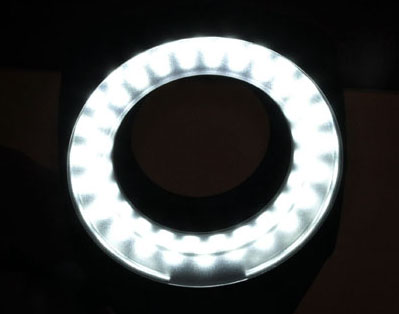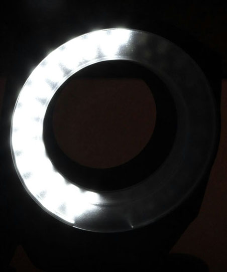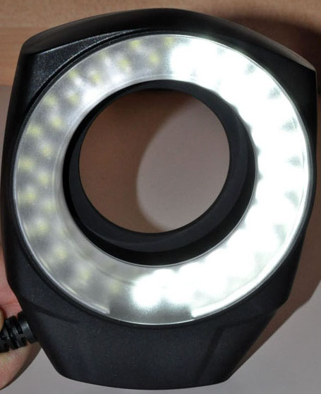 48 LEDs sorgen für eine gleichmäßige und permanent schattenfreie Ausleuchtung im Nah- und Makrobereich. Für plastischere Bilder mit mehr Relief lässt sich auch jeweils nur die linke oder rechte Seite mit je 24 LEDs einschalten.